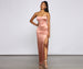 Make a sophisticated impression with a satin dress that wows! Nat features a sleeveless scoop neckline. sleek bungee straps. a backless design accented with two sleek bar straps. and a high side slit. The dress is composed of a curve-hugging satin fabric that offers a slight stretch. Complete look with rhinestone heels.Â