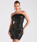 The Neriah sequin party mini dress demands diva vibes only! Be of the moment in her strapless neckline featuring a fab marabou feather trim. non-slip grip lining. a padded bust. and a flattering bodycon silhouette with a mini-length hem. The party dress is composed of a sequin-scroll pattern on mesh fabric for the perfect shine and has a stretchy knit lining. Complete the look in this mini dress with rhinestone strap heels for extra sparkle at birthdays or a Vegas weekend!