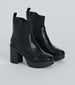 Introduce sleek. street style-ready vibes with these faux leather booties! The platform sole and block heel offer height and comfort. while the stretchy knit inserts provide easy on-and-off styling. Complete the look in a moto jacket for a concert or bar night!