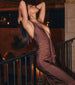 The definition of sleek seduction. This halter maxi dress drapes in all the right places with a deep plunge neckline. ruched sides. and soft knit finish—made for those nights that call for a little mystery and a lot of confidence.