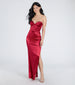 Everyone will marvel at your beauty in the Noel strapless satin formal dress showcasing a sultry high side slit for effortless movement and a flattering bodycon fit.