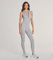 A sleeveless catsuit perfect for off-duty days running errands or grabbing coffee. The jumpsuit boasts a trendy collared neckline with a front zip-up closure and a form-hugging fit that flatters your curves. Pair with sneakers.