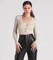 Slay all day in this essential henley bodysuit you'll love styling with day or night fits! The sweater rib knit bodysuit features long fitted sleeves. a plunge V-neckline. three snap-button front closures. and a thong-cut bottom with snap-button closures. Complete the look in new denim jeans and knee-high boots.