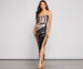 Keep your look trendy and fab in this curve-hugging tie-dye maxi dress. It features a sleeveless asymmetrical one-shoulder neckline. a single spaghetti strap. a flattering high waist seam. and a form-fitting maxi-length silhouette with a sultry thigh-high side slit. Complete the outfit with clear heels.