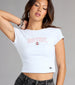 Business in the front. total baddie in the back. This open-back crop top serves varsity vibes with a flirty twist—perfect for tailgates. TikToks. or turning heads on campus.