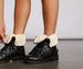 Create an edgy look with boots that bring the attitude. The boots feature a mid-calf fit. a lace-up front. a buckle accent at the back. and a faux fur lining. Complete look with a chunky sweater and skinny jeans.