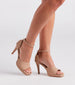 Keep on trend in these stylish nubuck heels perfect for dressing up or down! They feature a square toe. stiletto heel. wide curved toe strap. ankle buckle closure. and a platform sole. Complete the look in these heels with a blouse and midi skirt.