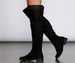It's all in the little details! This pair of over the knee boots are designed with a flat sole. an inner zipper. a round toe. and a cut out detailing at the top with small bow detail at the back. Boots are composed of faux suede. Complete look with a ribbed sweater dress for those cold weather vibes.