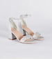 These glitter block heels are the perfect party partner! They feature an open round toe. a wide toe strap. a low block heel. a closed ankle. and an adjustable ankle strap with a rhinestone buckle closure. Complete the look with a sparkly clutch for a formal occasion!