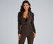 You'll be party-ready in this fab metallic glitter blazer! It features a lapel collar. long sleeves. a low V-neckline. a button-front closure. and a cropped. form-hugging fit. The glitter knit fabric offers plenty of stretch. Complete the look with the matching pants and rhinestone statement earrings.