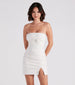 Look like a gift of fashion in this perfect bow linen dress for a chic wedding reception or party look! Featuring a strapless neckline with non-slip grip lining. a center front bow. a bodycon silhouette. and a flirty hem slit. Complete the look with cute block heels.