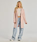 Layer on the chic style with this classic faux wool trench coat featuring a lapel collar. long sleeves. an open front. and a long-line hem with a relaxed fit. Style with a mini dress and knee-high boots for the perfect fall and winter vibe!