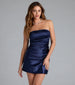 You'll have that perfect glow in this satin mini dress at the party! This stunning mini-length dress features a strapless neckline for a classic style. and a side pleated seam adds a touch of sophistication and creates a flattering A-line silhouette. Complete the look with stiletto heels.