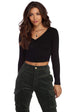 This knit crop top will give you the perfect fit for sure! It features a V neckline. long fitted sleeves. and a cropped hem. The black top is composed of a ribbed knit fabric that offers plenty of stretch.