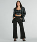 Perfectly chic. these straight-leg trouser pants will level up your looks for the office! Made with a structured non-stretch woven fabric. these pants feature a high waist for a flattering fit and a straight-leg silhouette for an on-trend vibe. The extended tab front design keeps the zipper. button. and hook and bar closure hidden for a sleek look. Style these dress pants with a cropped blouse and clear heels!