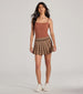 This plaid mini skirt is totally trending this season! It features a high-rise waist with a skinny belt accent for preppy style. an A-line silhouette. and a pleated mini-length hem. Complete the look in a basic top for any casual plans.