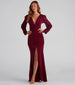Radiate all the chic vibes in the stunning Piper formal dress! She features long sheer chiffon blouson sleeves. a plunging V-neck and back. a ruched curve-hugging body. and a flowy floor-length silhouette with a high front slit to showcase some leg. Style this dress with strappy stiletto heels.