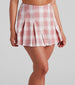 Keep it chic in a plaid skort for a fab day out! The skort features a plaid print. a high-rise elastic waist. a pleated skirt overlay. and a pair of wide-leg shorts. The skort is composed of a woven fabric that offers a relaxed fit with a minimal stretch. Complete look with a bustier and sandals.