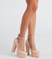 Doll it up as the playful icon we all know and love! These chunky platform pumps feature a square toe. ankle strap with buckle closure. and block heels. on patent faux leather material. Complete the look in a printed mini dress and earrings for a fun night out!