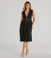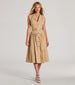 Make your look sweet and simple in this sleeveless midi dress perfect for summer plans! The collared V-neckline and button-down closures offer a classic touch. while the adjustable belted waist gives you a flattering A-line silhouette complete with a midi-length hem. Style this midi dress with wedges and earrings.