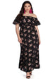 This beautiful floral maxi dress is perfect for your spring and summer occasions! It features a stretchy off the shoulder neckline with a ruffle pop over. a stretchy high waist seam. and a flowy floor-length skirt. Dress is composed of an unlined crepe fabric with no stretch.Â