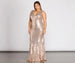 Shine from all your best angles in our shimmering Harmony dress! She features a sleeveless bodice. a plunging V neckline. supportive tank-like straps and princess seams. Her relaxed fit bodice leads to an elongating mermaid silhouette with a twirl worthy train. Dress is composed of a lined mesh fabric adored with glowing sequins.Â