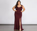 Make an unforgettable entrance in our wowing Kyla dress! She features a rich burgundy hue. a sleeveless bodice. a V neckline. wide overlapping pleated accents that drape the bodice and supportive shoulder straps. Her relaxed fit bodice leads to a curve hugging floor length silhouette accented with vertical seams and a high side slit. Dress is composed of a lined scuba fabric that offers a moderate stretch. Includes an exposed back gold zipper closure with ruched detailing.