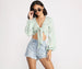 Keep it poised in a polka dot top to keep your looks on-trend this season. The top features a polka dot pattern. long sleeves and tie front bodice with a sexy cropped hem. Complete your look with high waist shorts and sunglasses for a day-date ready look.