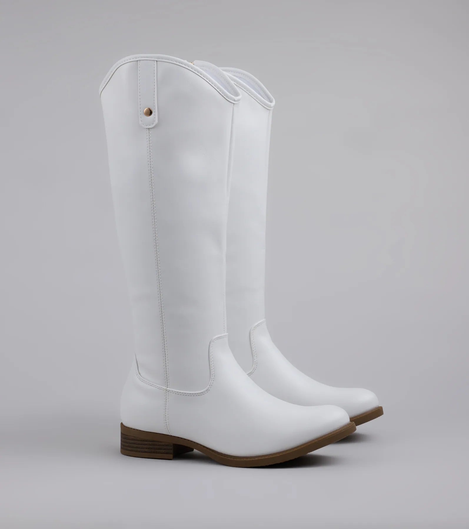 Perfect for adding a polished touch to your look. these under-the-knee riding boots are designed with a round toe and a curved under-the-knee length shaft for a sleek silhouette.