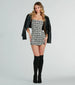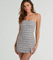Arrive on the scene in this strapless plaid romper for a posh vibe! The strapless neckline and form-hugging silhouette accentuate your curves while the front skirt overlay with slit adds a touch of flirtiness over the shorts lining on textured plaid knit fabric. Complete the look with a sassy crop jacket and boots for a dressy birthday brunch!