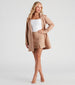 You'll be prepped for a successful outfit this fall by layering on this faux suede mini skirt featuring a high-rise waist. bodycon silhouette. front slit accent. and a contemporary houndstooth plaid pattern. Complete your fit with the matching blazer!