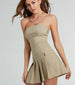 Look fabulously mod with this strapless mini dress! Made from smooth woven fabric. discover a next-level fashionista vibe in this dress featuring an A-line silhouette. belt loop accents along the waist. and a pleated mini-length hem for added flair. Complete the look in a blazer for weekend plans!