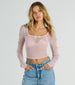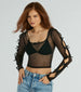 You'll look and feel so pretty in this statement mesh crop out for going out! The fitted long sleeves feature alluring keyhole cutouts adorned with delicate satin bows. while the square neckline is accentuated with another satin bow. The fitted crop hem and sheer mesh fabric add a sultry touch! Complete the look with a bralette and jeans.