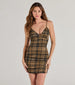 Look and feel pretty in this plaid mini dress. which boasts a flirty V-neckline and bodycon silhouette that shows your curves! Pair with a leather jacket and flats.