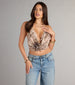 The flirty little top that's ready for fab vibes. This leopard print halter crop top hugs in all the right places with a plunging cowl neckline and sleek bar strap detail for that fierce. unforgettable look.