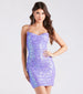 Illuminate the night and radiate a gorgeous iridescent glow in the Quinn formal sequin bodycon mini dress. She features a sleeveless cowl neckline. bungee spaghetti straps that lead to a cross-back strap design. a mini-length hem with a curve-hugging silhouette. and all-over sequin embroidery. Style with metallic platform heels for a fabulous birthday outfit!