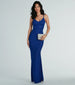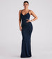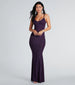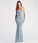 Make your mark in shimmery beauty! The Rachel formal glitter long dress is sure to dazzle at the school dance. banquet dinner. or celebration. She features a sleeveless V-neck. dual spaghetti straps. an open lace-up back with tie closure. and a form-hugging mermaid silhouette that gently sweeps into a floor-length hem. The formal dress is composed of a stretch-knit glitter fabric with partial lining. Complete your dressy look in an elegant necklace and earrings set.