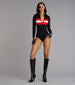 Set hearts racing this Halloween in a racer costume! The bodysuit features a mock neck with a plunging V-neckline with zippered closure. fitted long sleeves with a checkered design. contrasting stripe design at the bust. and cheeky coverage. Complete the costume with fishnet tights and faux leather gloves.
