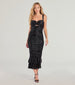 An alluring sleeveless midi dress perfect for cocktail parties or dressy dates. The dress is designed with a flirty bust cutout. flattering bodycon fit. and a ruffled midi-length hem. Pair with heels.