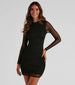 Head out in this mesh mini dress that brings some sheer appeal! The dress features a crew neck. sheer mesh long sleeves. ruched side seams. and a mini-length silhouette. The dress is composed of a lined mesh fabric that offers a form-hugging fit with a moderate stretch. Complete the look with rhinestone heels and a cuff.