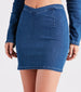 Ready to slay? Cause this denim mini skirt is your perfect pairing for trending all season! It features a mid-rise V-waist cut. a back zipper and hook and eye closure. and a bodycon silhouette. Complete the look with matching jacket.