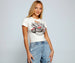Let your rebellious side with a graphic tee that says it all! The tee features a crew neckline. short sleeves. a slashed design. an image of a motorcycle. a graphic that reads: " Rebel Pride" and a cropped hem. Complete look with high waist shorts and booties.