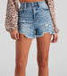 With these denim mom shorts. you're ready for music festivals and beyond! The shorts by Windsor Denim feature a high-rise waist. distressed detailing on front and back. a mom-style silhouette. and a frayed cut-off hem. The premium denim fabric offers no stretch. Complete the look in a beaded bustier and sandals.