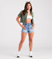 Level up your casual summer outfits with the Remy frayed hem denim shorts by Windsor Denim. They feature a high-rise waist. a color-faded design for a vintage look. and a cute frayed hem with side slit accents. Includes a five-pocket and belt loop design. Style with a basic bodysuit and slip-on sandals.