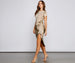 Channel a retro mood with a midi dress that is totally fab! The dress features a tie-dye print. a crew neckline. short sleeves. and a high side slit with a twist knot accent. The dress is composed of smooth knit fabric that offers a form hugging fit with a moderate stretch. Complete look with sandals and a denim jacket.