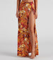 Bring the 70s vibes to the party in this retro swirl print maxi skirt featuring a high-rise waist. a sultry front slit. and a flowy silhouette. Complete the look in the matching top and statement earrings.