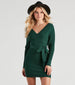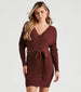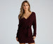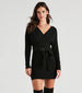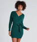 Wrap yourself in the cozy elegance of this long-sleeve mini sweater dress. The dress features a flattering wrap design with a side tie that cinches at the waist. enhancing your silhouette. Crafted from a soft ribbed knit fabric. it offers both warmth and style. making it perfect for chilly days. The plunging V-neckline adds a touch of allure. while the Dolman-shaped sleeves maintain a chic and sophisticated look. Ideal for any autumn or winter occasion. this sweater dress pairs beautifully with boots or heels for a stylish seasonal ensemble.