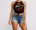 Add a little edge to your wardrobe with this slashed graphic tee. Pair it with distressed denim and booties for a total baddie look.