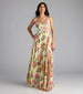 Beautifully constructed from satin fabric with a floral print. the Robina A-line formal dress radiates spring vibes like no other! Boasting a charming lace-up back and high front slit for effortless movement along the graceful floor-length hem.