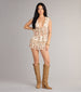 A skort that's equal parts sweet and sultry. With a high-rise waist and ruffled hem. this floral skort is your go-to for brunch. concerts. or just serving soft-girl vibes all season.